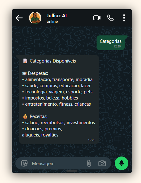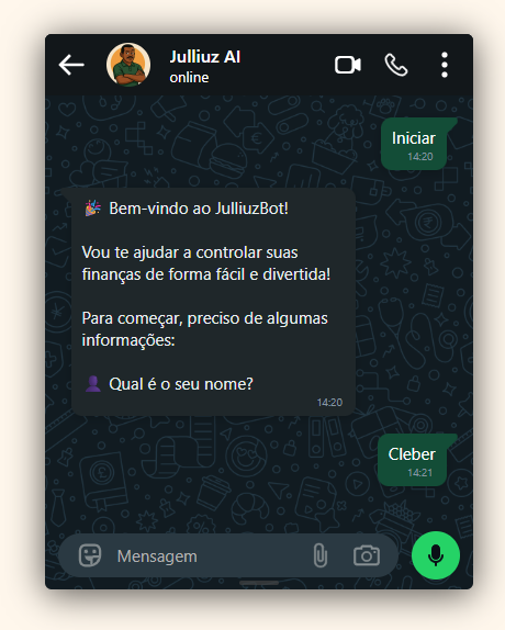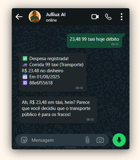 Julliuz é o bot de WhatsApp que organiza suas finanças com piadas ácidas, relatórios incríveis e um sistema de gamificação que transforma sua vida financeira em um jogo.